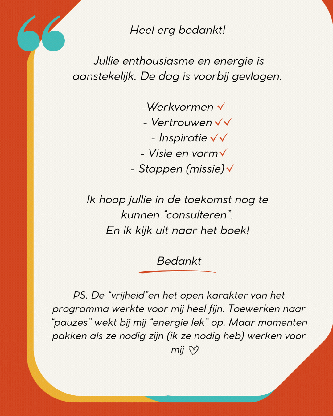 We zijn nieuwsgierig en altijd op zoek naar de weerstand want daar zit het begin van beweging. Loop je vast? Mis je plezier? Wij kijken graag naar wat er nou echt gebeurt en wat jij kan doen om een ander proces in werking te zetten met een verrassend eindresultaat.